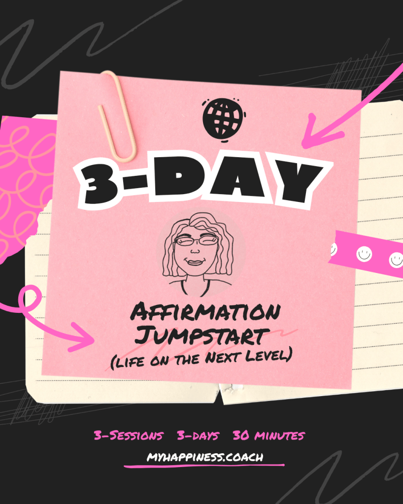Hop over to the workshop page for more information about the 3-Day Affirmation Jumpstart – https://myhappiness.coach/courses/